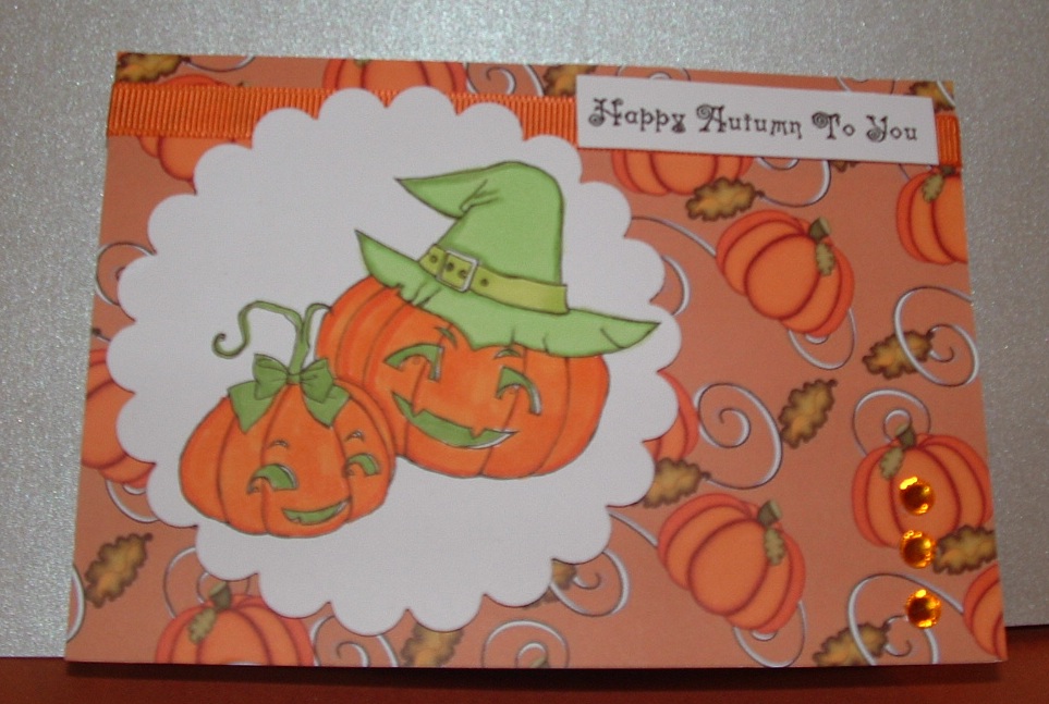 With a strong background paper and strong image, I kept the remainder of the card simple to avoid clutter. The image has been cut using a Spellbinders scallop circle die. Usually I use this particular die for the matting but decided this time to use it for the image instead! It stood out beautifully against this background paper so decided not to matt at al. The sentiment is sitting atop some orange grosgrain ribbon from American crafts. The only other embellishment is some rhinestones.