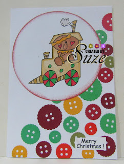 Great take on the sketch Suze, love the way you've used the buttons for the angled piece! The little gingerbread image is adorable, I love the candy train he's driving. Fabulous!